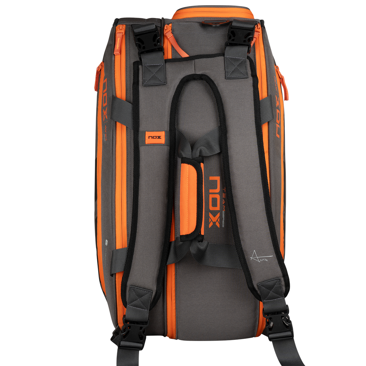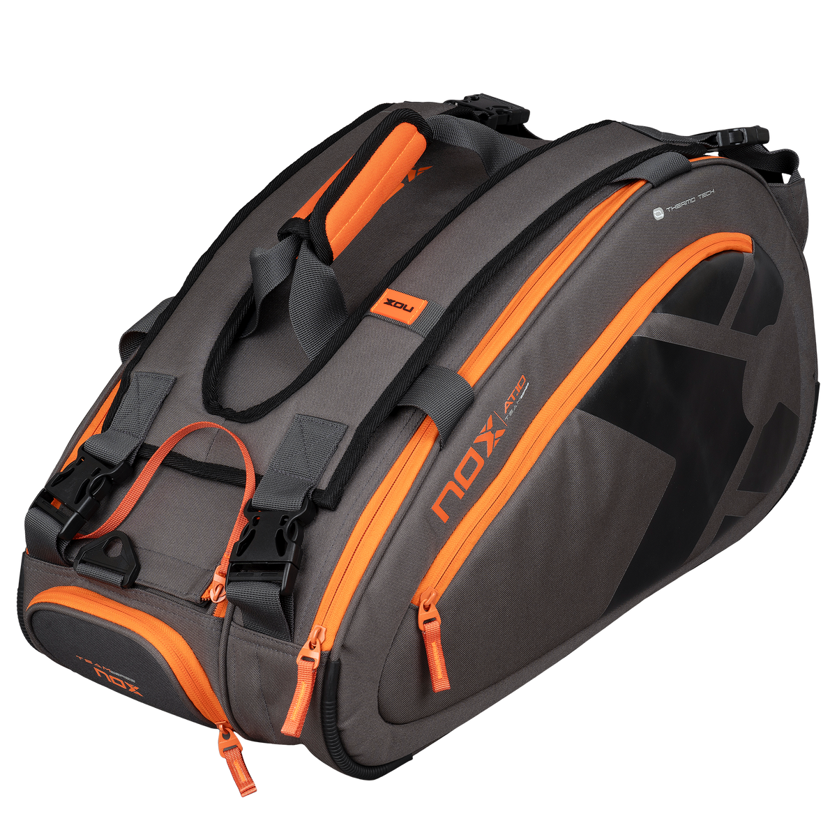 The main section with a double zipper to make it easy to reach the inside, holding 3 rowing tennis rackets, clothes and more.